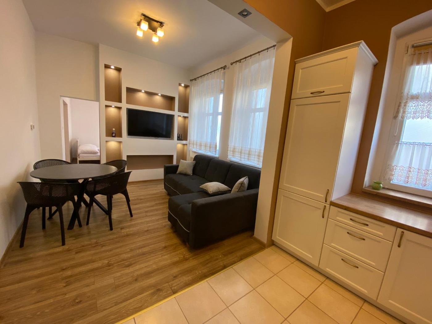 Apartament z 2 sypialniami. This apartment includes 1 living room, 2 separate bedrooms and 1 bathroom with a shower and a hairdryer. In the kitchen, guests will find a stovetop, a refrigerator, a dishwasher and kitchenware. The apartment offers a washing machine, a dining area, an electric kettle, a dressing room and a flat-screen TV with streaming services. The unit has 3 beds. Apartament - 8 osobowy. Powierzchnia pokoju ok.: 55 mkw.