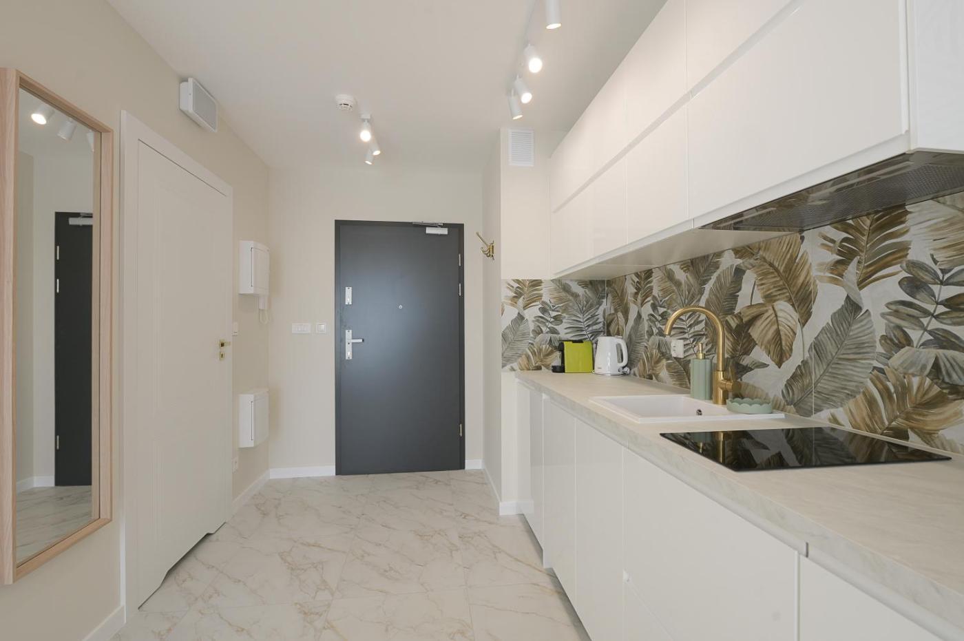Apartament dwuosobowy typu Studio Deluxe. Providing free toiletries, this studio includes a private bathroom with a shower and a hairdryer. The well-fitted kitchenette features a stovetop, a refrigerator, a dishwasher and kitchenware. This air-conditioned studio comprises a dining area, a flat-screen TV with cable channels a washing machine and a balcony. The unit offers 1 bed. Studio - 2 osobowy. Powierzchnia pokoju ok.: 28 mkw.