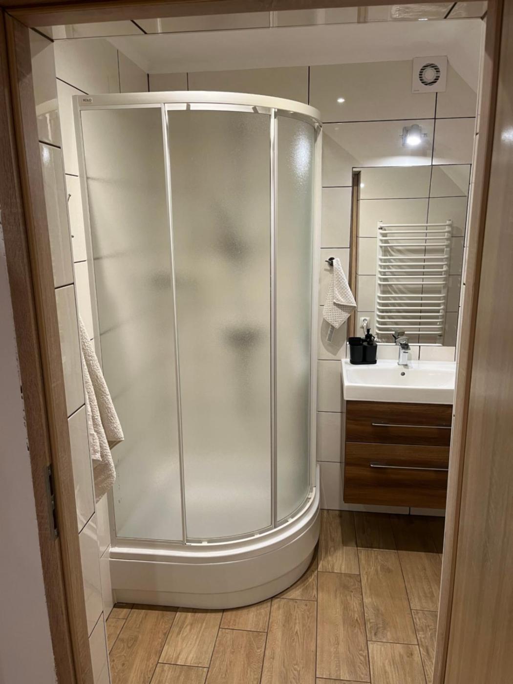 Pokój Czteroosobowy. The well-equipped kitchenette has a stovetop, a refrigerator, kitchenware and a microwave. The spacious quadruple room offers a private entrance, a wardrobe, a balcony with garden views as well as a private bathroom boasting a shower. The unit has 5 beds. Pokój Czteroosobowy - 5 osobowy. Powierzchnia pokoju ok.: 50 mkw.