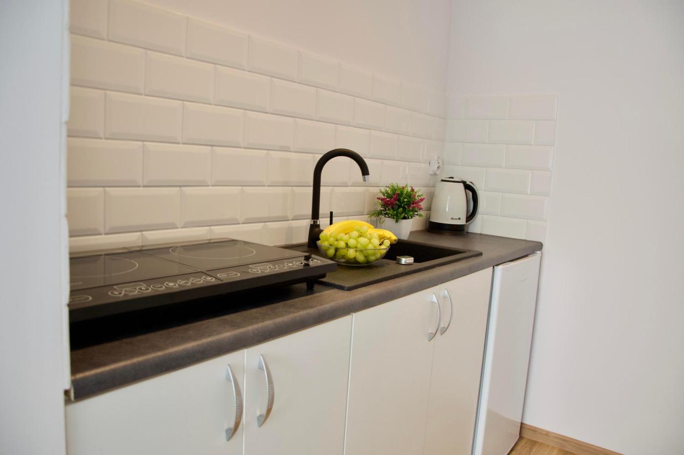 Apartament z 1 sypialnią. Boasting a private entrance, this apartment includes 1 living room, 1 separate bedroom and 1 bathroom with a shower and a hairdryer. In the well-fitted kitchen, guests will find a stovetop, a refrigerator, kitchenware and an electric kettle. The apartment has parquet floors, a seating area with a flat-screen TV, soundproof walls, a dining area as well as garden views. The unit has 3 beds. Apartament - 5 osobowy. Powierzchnia pokoju ok.: 35 mkw.