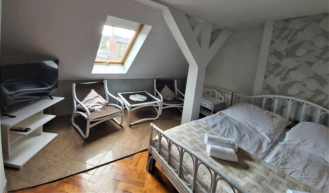 Apartament typu Deluxe. This apartments standout feature is the sauna. This apartment includes 1 living room, 2 separate bedrooms and 1 bathroom with a shower and free toiletries. The air-conditioned apartment offers a flat-screen TV with cable channels, a tea and coffee maker, a seating area, a dining area as well as city views. The unit has 2 beds. Apartament - 4 osobowy. Powierzchnia pokoju ok.: 40 mkw. ;