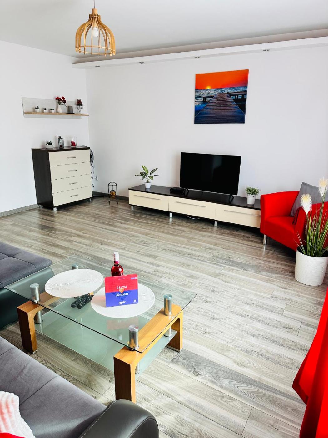 Apartament z 2 sypialniami. This apartment comes with 1 living room, 2 separate bedrooms and 1 bathroom with a shower and a hairdryer. Meals can be prepared in the kitchen, which features a stovetop, a refrigerator, kitchenware and a microwave. This apartment has a dining area, flat-screen TV with streaming services, garden views, as well as winechampagne for guests. The unit has 4 beds. Apartament - 6 osobowy. Powierzchnia pokoju ok.: 60 mkw. ;