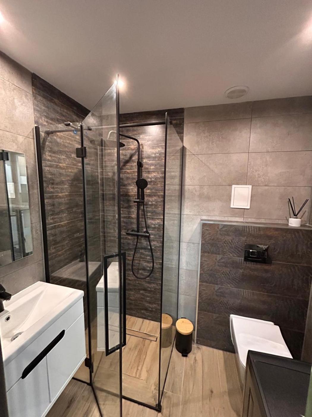 Apartament z 1 sypialnią. This apartment comes with 1 living room, 1 separate bedroom and 1 bathroom with a shower and a hairdryer. The fully equipped kitchen features a stovetop, a refrigerator, a dishwasher and kitchenware. This apartment has a washing machine, a tea and coffee maker, a flat-screen TV with streaming services and a balcony. The unit has 2 beds. Apartament - 4 osobowy. Powierzchnia pokoju ok.: 40 mkw.