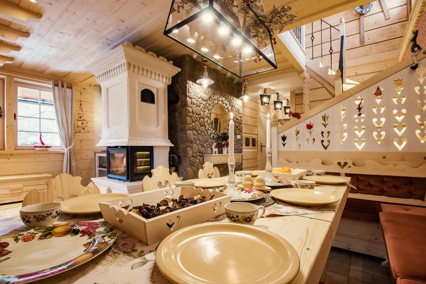 Domek typu Superior z 7 sypialniami. Guests will have a special experience as this chalet features a sauna and a fireplace. This chalet comes with 1 living room, 7 separate bedrooms and 5 bathrooms with a bath and free toiletries. Guests will find a stovetop, a refrigerator, a dishwasher and kitchenware in the well-fitted kitchen. The chalet also includes a barbecue. The unit has a washing machine, garden views, a terrace and winechampagne is available for guests. The unit has 9 beds. Domek - 18 osobowy. Powierzchnia pokoju ok.: 20 mkw.