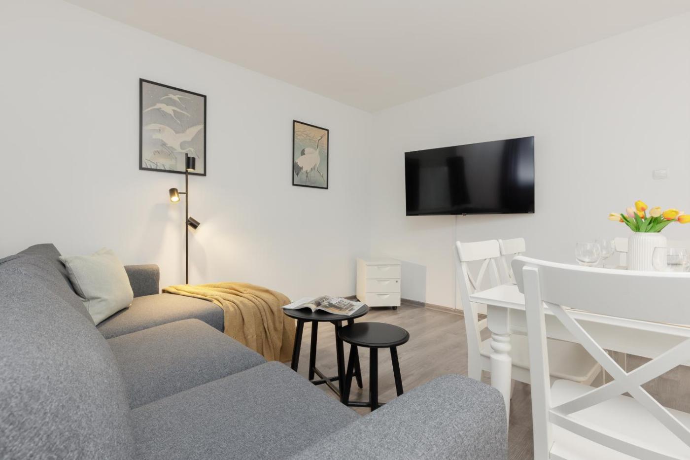 Apartament z 1 sypialnią. Featuring a private entrance, this apartment consists of 1 living room, 1 separate bedroom and 1 bathroom with a shower and a hairdryer. In the well-equipped kitchenette, guests will find a stovetop, a refrigerator, a dishwasher and kitchenware. Boasting a balcony with city views, this apartment also provides a washing machine and a flat-screen TV. The unit offers 2 beds. Apartament - 5 osobowy. Powierzchnia pokoju ok.: 36 mkw. ;